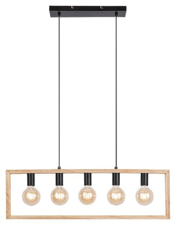 Visilicu INDIGO sa 5 sijalica preporučujemo ljubiteljima nordijskog stila, pre svega u dnevnoj ili spavaćoj sobi. Crne metalne glave lampe su pričvršćene za veliki drveni abažur koji u stvari ne funkcioniše kao abažur, već je to kvadratni drveni element koji podseća na okvir za fotografije. Ovo svetlo se može pričvrstiti na plafon uz pomoć kablova i izdužene kvadratne dekorativne osnove. INDIGO može da se koristi sa pet sijalica, od kojih svaka ima snagu do 40W. Tip grla je E27. Zbog samostojećih sijalica, dobro je koristiti ovo viseće svetlo sa sijalicama nekonvencionalnog, izuzetnog oblika. U zavisnosti od vaših zelja, možete odabrati izvore svetlosti koji zrače toplo ili prirodno belo svetlo. Širina INDIGO visilice je 860 mm, rastojanje od plafona je 1.100 mm. Ovaj model se isporučuje bez izvora svetlosti.