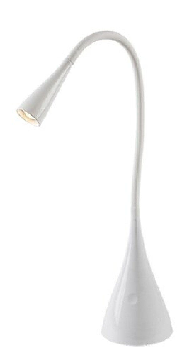 Moderno Jeff 2 pametno stono svetlo može biti praktičan izbor u dnevnoj sobi, spavaćoj ili radnoj sobi. Sjajni plastični model bele boje upotpunjen je belim metalnim abažurom, dok se vitki krak lampe završava čvrstim ukrasnim postoljem koji se širi poput suknje. Lampa ima fleksibilnu ruku koja vam pomaže da usmerite svetlo stolne lampe po potrebi. Jeff 2 ima ugrađeni LED izvor svetlosti energetske klase G sa snagom od 4 V, svetlosnim fluksom od 270 lumena sa senkom i 290 lumena bez senke, i životnim vekom od 25.000 sati. Temperatura boje izvora svetlosti je 3.000 K i shodno tome zrači toplo belo svetlo koje opušta vaše oči. Lampa se može zatamniti pomoću prekidača na dodir, odnosno njena osvetljenost se može podesiti u tri koraka (10, 40 ili 100%). Dimenzije stonog svetla su sledeće: visina 480 mm, prečnik abažura 40 mm, prečnik dekorativne osnove 110 mm, širina lampe 285 mm, dužina kabla 1.800 mm, ugao snopa 100°. Ovaj model se isporučuje bez izvora svetlosti.