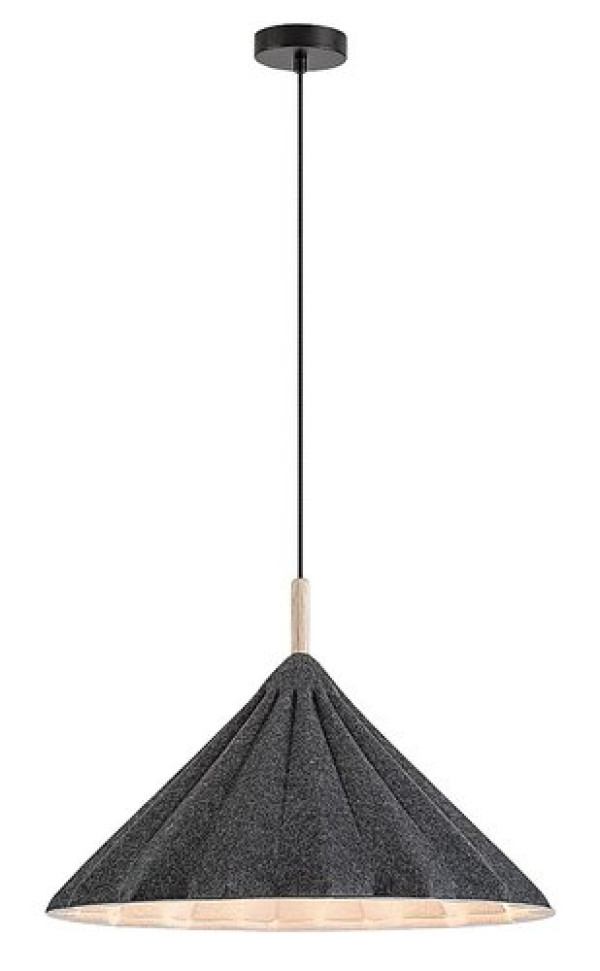 Rabalux Linavo viseća lampa se preporučuje onima koji vole ekološki prihvatljiva rešenja. Ovaj model je izrađen u crnoj boji sa metalnim postoljem i sivom filcanom senkom. Materijal od kojeg je senka napravljena je ekološki prihvatljiv, reciklirani materijal. Senka ima trouglasti oblik i talasastu površinu. Zahvaljujući velikom prečniku i otvorenom dnu, sijalica emituje svetlost pod širokim uglom. Viseća lampa se može pričvrstiti za plafon pomoću male okrugle dekorativne baze i može se koristiti sa jednom sijalicom snage do 40 W. Tip grla je E27. U zavisnosti od vašeg ukusa, možete odabrati izvor svetlosti koji emituje toplo ili prirodno belo svetlo. Lampa je idealan izbor za dnevnu sobu, spavaću sobu ili radnu sobu. Isporučuje se bez izvora svetlosti.