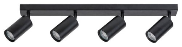 Reflektor SOLO sa 4 sijalice u minimalnom stilu biće praktičan deo nameštaja vaše moderne dnevne sobe ili spavaće sobe. Ovaj crni model je u potpunosti izrađen od metala i upotpunjen je cilindričnim abažurima i izduženim dekorativnim postoljem. Ovaj reflektor može da se koristi sa četiri sijalice, svaka snage do 25W. Tip grla je GU10. U zavisnosti od vaših zelja, možete odabrati sijalice koje zrače toplo ili prirodno belo svetlo. Zahvaljujući fleksibilnim glavama lampe možete usmeriti svetlost lampe prema vašim potrebama i tako efikasno osvetliti celu prostoriju. Dimenzije SOLO reflektora sa 4 sijalice su sledeće: širina 600 mm, visina 140 mm, prečnik svakog abažura je 55 mm, rastojanje lampe od plafona je 135 mm. Ovaj model se isporučuje bez izvora svetlosti.