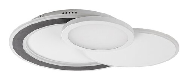 Rabalux Stavros plafonska lampa se preporučuje onima koji smatraju da su kreativan dizajn i pametne funkcije podjednako važni. Ova LED lampa je izrađena od metala u crnoj boji sa belim plastičnim senzorom i sastoji se od tri okrugla, delimično preklapajuća elementa različitih veličina. Lampa ima ugrađeni LED izvor svetlosti koji garantuje energetski efikasan rad i dug vek trajanja. Temperatura boje lampe može se podešavati pomoću daljinskog upravljača ili zidnog prekidača. Pored toga, dostupno je RGB osvetljenje koje se primenjuje na površini najmanjeg, centralnog elementa lampe. Osvetljenost plafonske lampe je takođe prilagodljiva, a dostupna je i funkcija memorije - obe funkcije se mogu kontrolisati daljinskim upravljačem. Svetlosni intenzitet lampe je dovoljan za osvetljavanje većih prostorija. Idealna je za dnevnu sobu, trpezariju ili spavaću sobu.