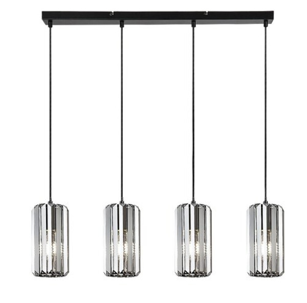 Privezak Veness sa 4 sijalice klasičnog stila može biti elegantan izbor u dnevnoj sobi, trpezariji ili spavaćoj sobi. Mat crna metalna lampa upotpunjena je cilindričnim zatamnjenim staklenim abažurima, a može se pričvrstiti na plafon uz pomoć dugačkog pravougaonog ukrasnog postolja. Četiri glave lampe vise jedna pored druge u nizu na istoj visini. Izgled priveska je poseban zbog abažura koji su sastavljeni od trouglastih elemenata. Veness se može koristiti sa četiri izvora svetlosti, svaki snage do 40 V. Tip utičnice je E27. Ukoliko želite da lampu ugradite u spavaću sobu, preporučljivo je da izaberete sijalice koje emituju toplu belu svetlost jer ova vrsta svetlosti opušta vaše oči i doprinosi stvaranju prijatne, intimne atmosfere. Dimenzije privezka Veness sa 4 sijalice su sledeće: širina 700 mm, prečnik svakog abažura 105 mm, visina 200 mm, rastojanje lampe od plafona 1.200 mm. Ovaj model se isporučuje bez izvora svetlosti.