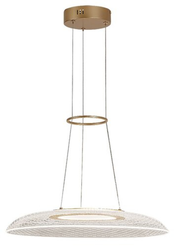 Luster Rabalux Zofrael preporučuje se onima koji traže sofisticiranu visilicu jedinstvenog izgleda. Ovaj poseban model izrađen je sa zlatnim metalnim telom i providnim akrilnim senilom. Senilo se široko širi, sa blagim zakrivljenjem nadole na ivici. Njegovu površinu krasi prelep ugravirani uzorak koji postaje vidljiv kada se lampa uključi. Visilica se pričvršćuje za plafon pomoću okrugle zlatne dekorativne baze i srebrnih metalnih kablova. Kablovi su spojeni estetskim zlatnim prstenom iznad senila. Luster ima ugrađeni LED izvor svetlosti koji obezbeđuje energetsku efikasnost i dug vek trajanja. Lampa emituje toplo belo svetlo. Idealna je za dnevnu sobu, trpezariju ili spavaću sobu.